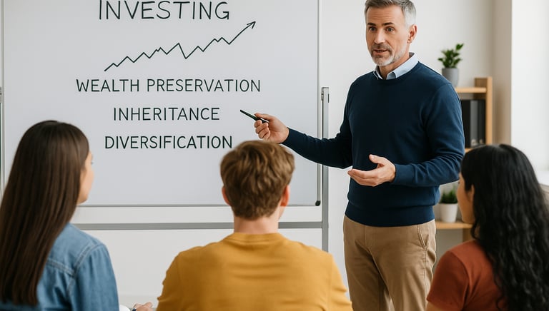Programa de aulas voltadas para jovens/adultos: conceitos de investimento, preservação patrimonial, herança e diversificação. Pode ser em grupo ou individual, com material gravado e sessões ao vivo para tirar dúvidas. Ajuda os jovens a construir bases sólidas para um futuro financeiro.